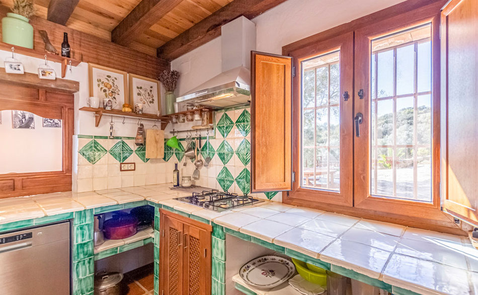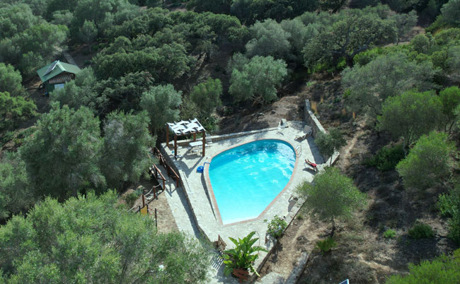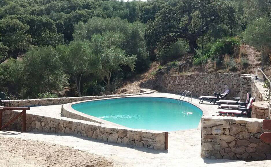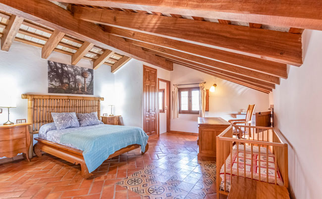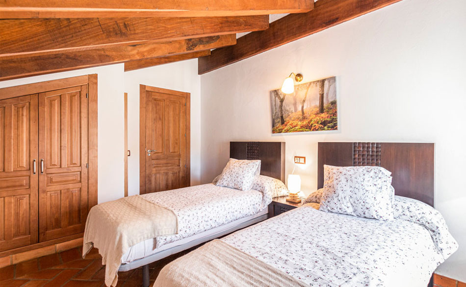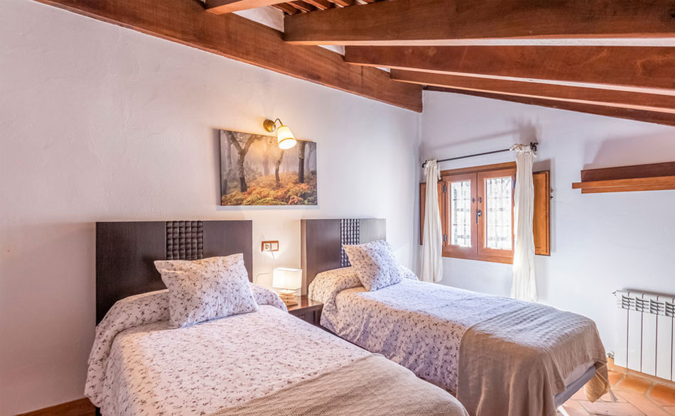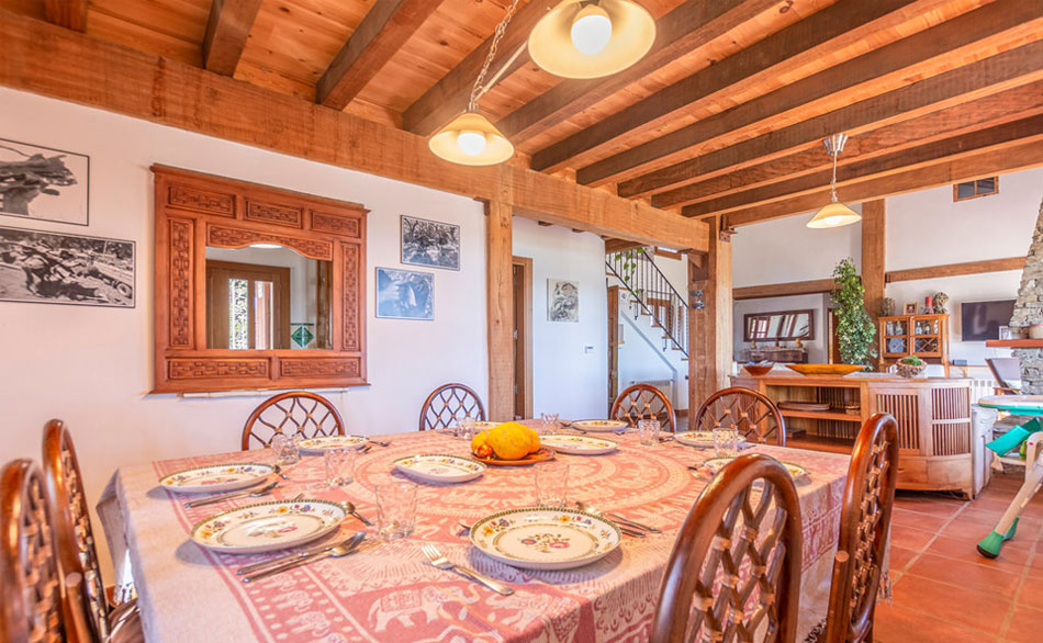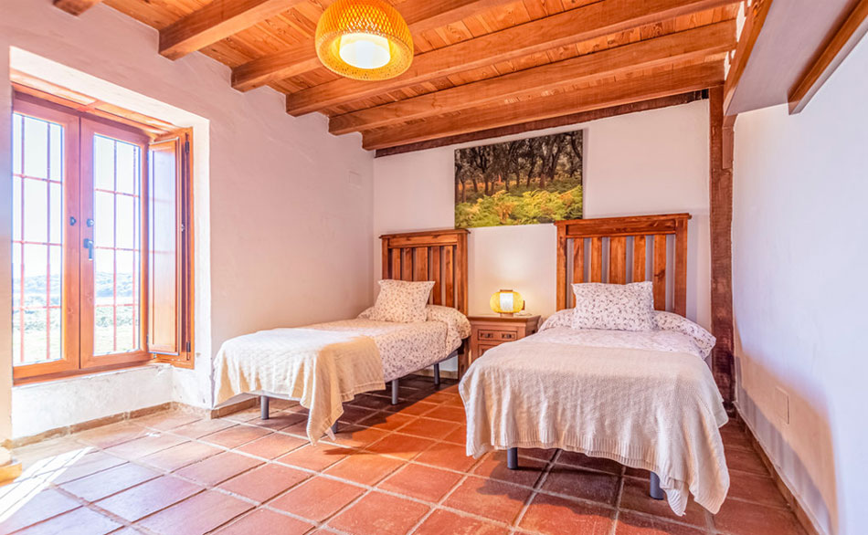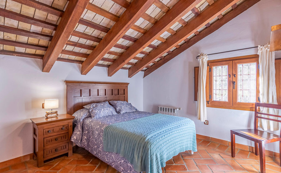 La casa, con cuatro dormitorios dobles y cinco baños tiene capacidad para ocho personas, con zonas exteriores de barbacoa y horno de leña así como con piscina que crean un conjunto enorme belleza pues se abre a un embalse de fondo, apacible y tranquilo, donde sol y sombra se hacen guiños perturbados únicamente por las nubes o por los numerosos bandos de aves que nos visitan.